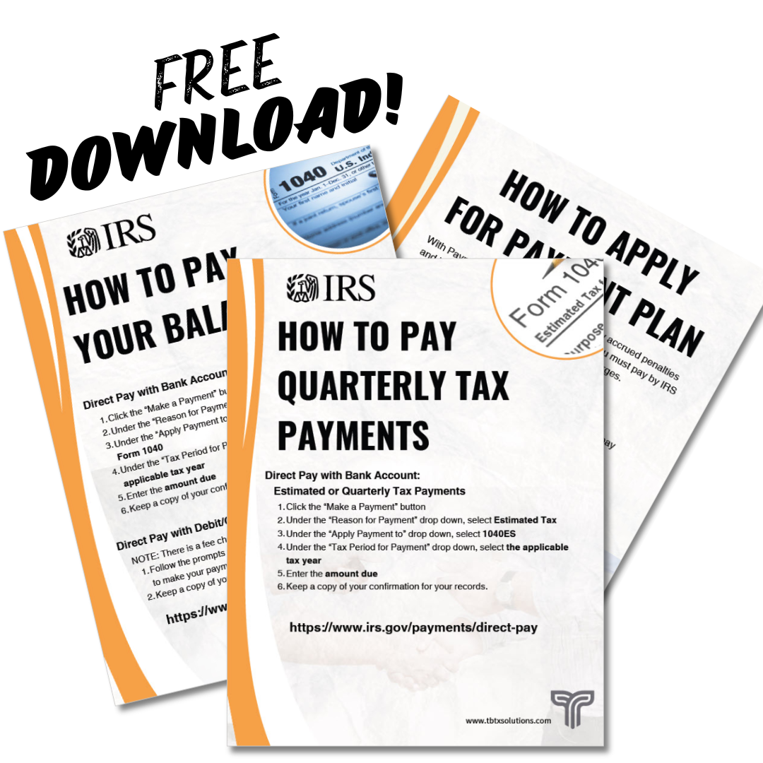 FREE GUIDE: How to Make Tax Payments to IRS Provide your email to gain access to this document. Name * First Name Last Name Email * Thank you!Please download your free download.[Click here]